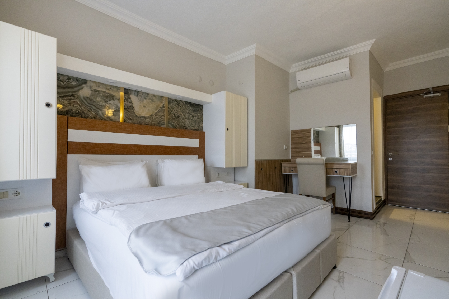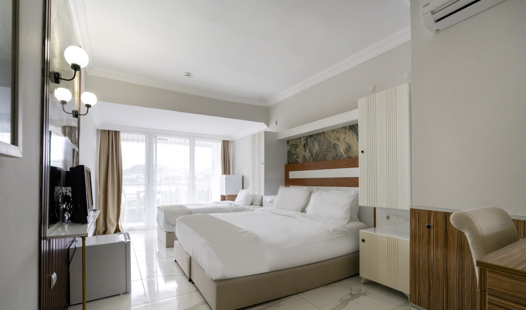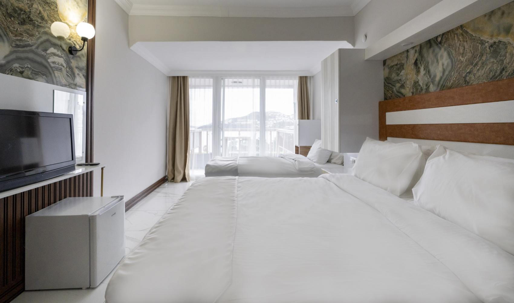 Deniz manzarası ve teras keyfini bir arada sunan Standart Odalar, çift kişilik konaklamalar için konforlu ve huzurlu bir ortam sağlar. Modern donanımı ve özenli detaylarıyla tatilinizi keyifli hale getirir.