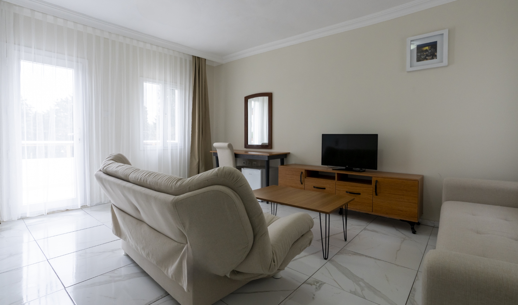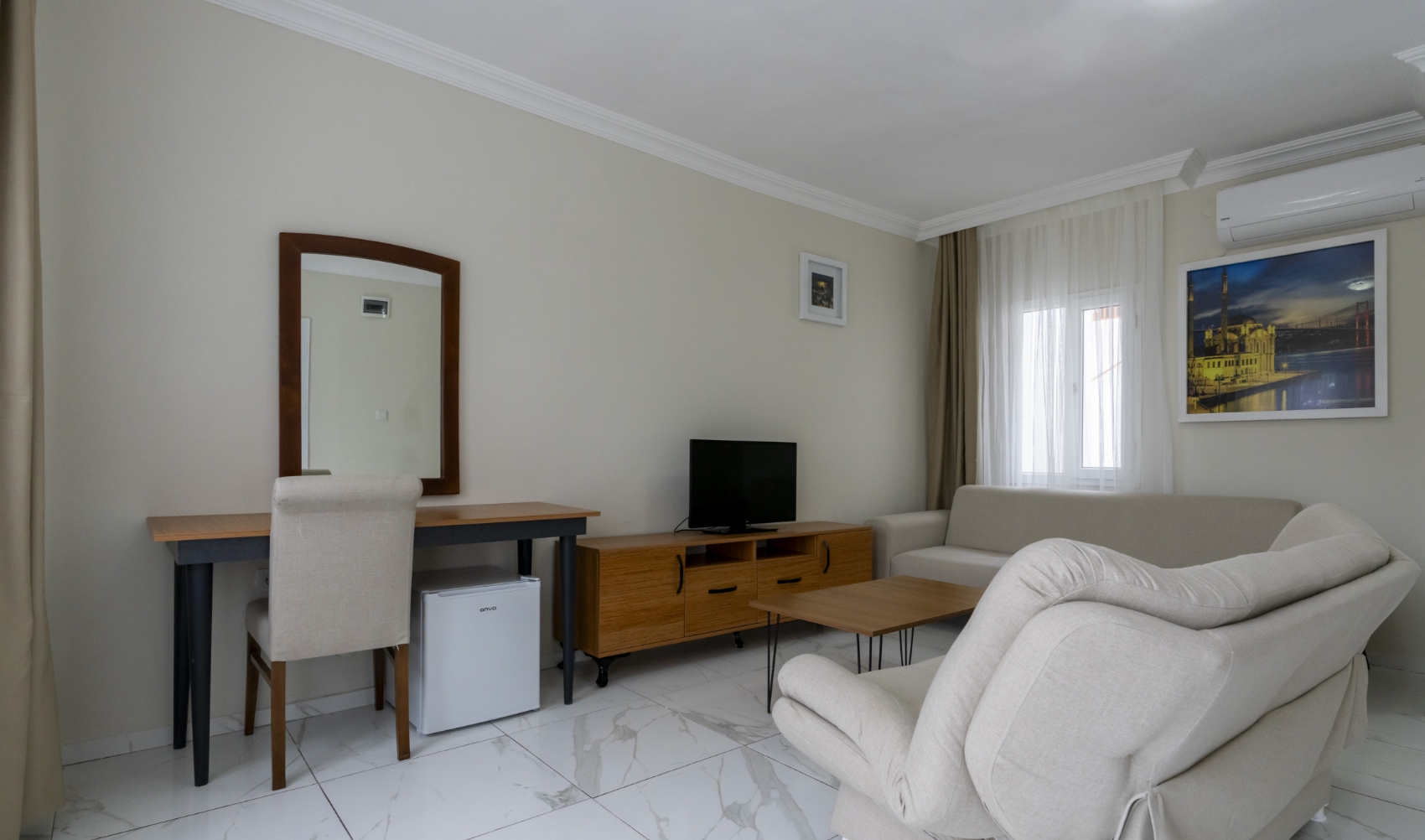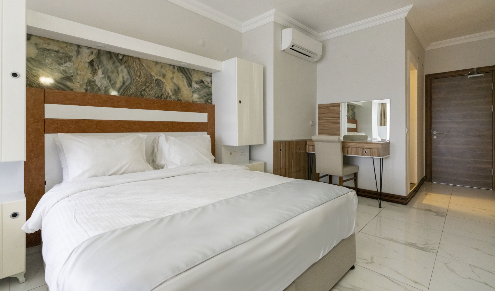 Deniz manzarası ve teras keyfini bir arada sunan Standart Odalar, çift kişilik konaklamalar için konforlu ve huzurlu bir ortam sağlar. Modern donanımı ve özenli detaylarıyla tatilinizi keyifli hale getirir.